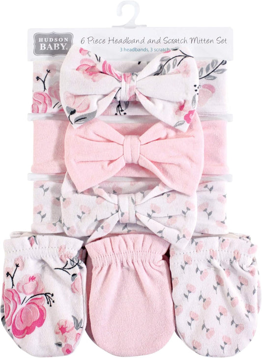 Adorable Hudson Baby Girls' Cotton Headband and Scratch Mitten Set for Ultimate Comfort and Style