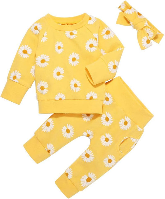 Adorable 3-Piece Long Sleeve Outfit Set for Baby Girls - Cute Tops and Pants for Toddlers