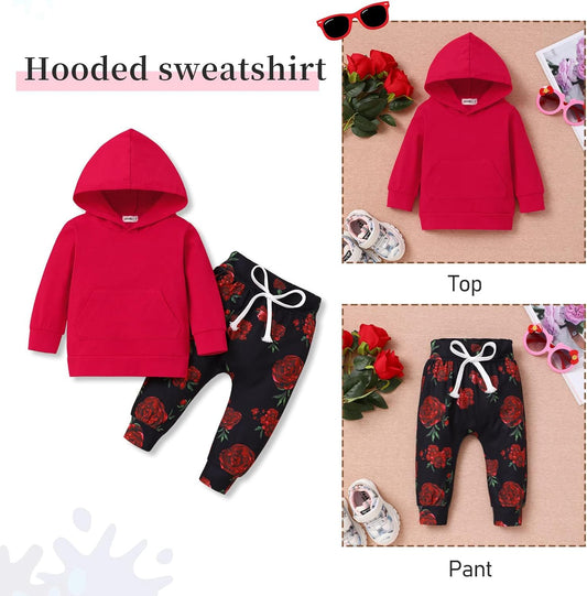 Adorable Baby Girl Flower Hoodie Sweatshirt & Pant Set with Headband - Perfect Fall & Winter Outfit for Toddlers
