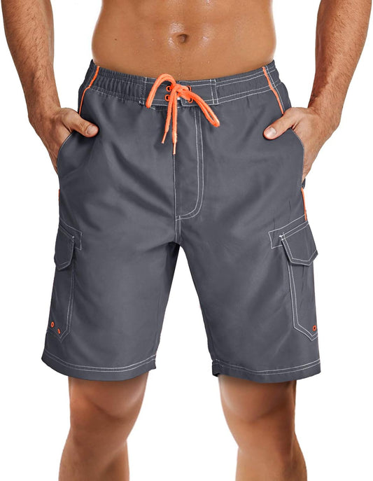Men's Quick-Dry Watermelon Red Swim Trunks with Lining by TACVASEN