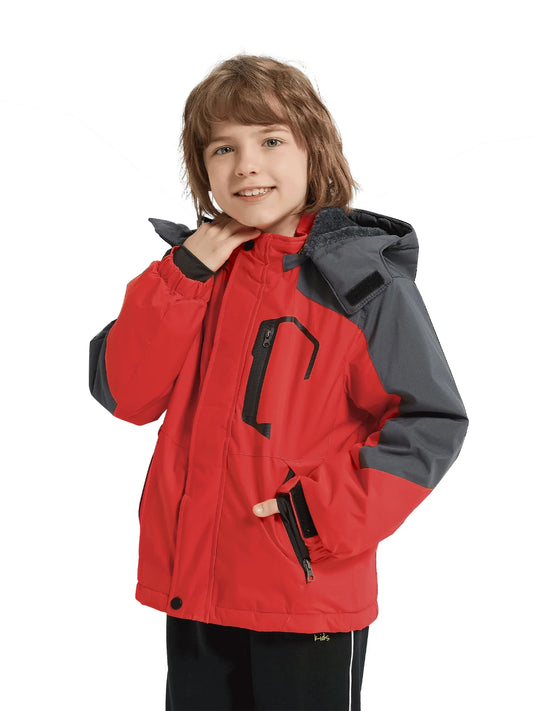 Boys' Waterproof Recycled Winter Ski Jacket - Red, Size 8