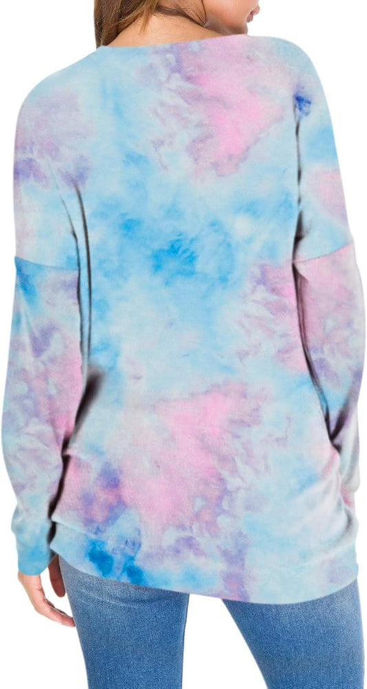 Pink Queen Women's Multicolor Tie-Dye Long Sleeve T-Shirt with Patches and Pockets, Size L