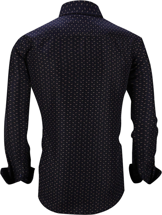 Stylish SAMERM Men's Printed Dress Shirt - Easy Care Regular Fit Long Sleeve Casual Button-Down (Print14, M)